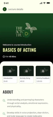 Med The Actor's Truth tilpasses læringen din timeplan, ikke omvendt. De forhåndsinnspilte øktene gir deg friheten til å dykke ned i materien når som helst og hvor som helst, i ditt eget tempo. Dette gir en enestående fleksibilitet til å mestre de kraftfulle "Being and Doing"-metodikkene, som er avgjørende for å skape overbevisende og ekte karakterer. Appen er designet for å styrke dine sceneteknikker og hjelpe deg med å transformere din tilnærming til skuespillet, slik at du kan levere prestasjoner som berører og engasjerer publikum på et dypere nivå.