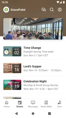 Hold deg kontinuerlig informert om alt som skjer i **GracePoint Portland**-fellesskapet. Appen gir deg en klar oversikt over kommende arrangementer, møter og spesielle samlinger, slik at du enkelt kan planlegge din deltakelse og engasjement. For å sikre at du aldri går glipp av viktige nyheter eller inspirerende innhold, mottar du relevante oppdateringer og kunngjøringer direkte via varslinger. Dette gjør **GracePoint Portland** til et uunnværlig verktøy for å være fullt engasjert og oppdatert på fellesskapets pulserende liv.