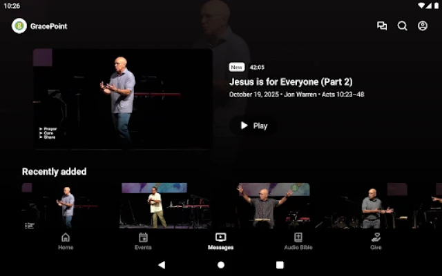 GracePoint Portland er din digitale kobling til menigheten. Få tilgang til prekener, se kommende arrangementer, og utforsk alt medieinnhold. Hold deg oppdatert med ukentlige notater og varsler.
