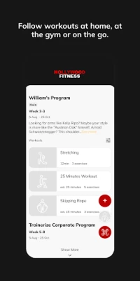 Med Hollywood Fitness App sporer du enkelt treningsøkter og måltider. Mål fremgangen din og nå dine personlige treningsmål, alt med veiledning fra din egen personlige trener. Få den støtten du trenger for å lykkes med din fitnessreise.