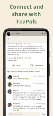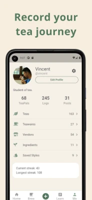 MyTeaPal er mer enn bare et personlig verktøy; det er også en bro til andre te-entusiaster. Koble deg med venner, del smaksnotater og bygg ditt eget te-fellesskap, og få daglige påminnelser for å etablere en mindful te-rutine. Nyt tryggheten ved at alle dine data og bilder synkroniseres sømløst på tvers av enheter. Vincent, Founder of MyTeaPal, skapte denne appen ut av et genuint ønske om å gi te-elskere det komplette verktøyet han selv savnet – en plattform som feirer hver eneste slurk og hvert eneste minne. La MyTeaPal veilede deg til en dypere forståelse og større glede i din daglige te-seremoni. Velkommen til et fellesskap hvor din te-reise er i fokus.