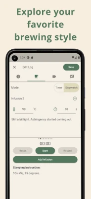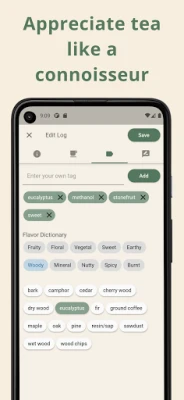 Med MyTeaPal kan du enkelt katalogisere alle dine teer, tevarer og foretrukne bryggemetoder på ett sentralisert sted. Berik samlingen din med egne bilder og detaljert informasjon, og hold en nøyaktig oversikt over lagerbeholdningen med en smart mengdesporing som automatisk justeres når du nyter en kopp. Dykk dypere inn i teverdenen med en innebygd te-leksikon, utforsk ulike stiler, og koble dem til dine egne oppdagelser. Registrer dine smaksnotater og bryggestatistikker for hver infusjon, og skap en levende, personlig te-dagbok som fanger essensen av hver kopp. Enten du følger en nøyaktig tidtaker for den optimale bryggen eller lar intuisjonen lede deg med en stoppeklokke, gir MyTeaPal deg verktøyene for mesterlig te-tilberedning. Visualiser dine preferanser med en omfattende smaksordbok, ranger dine favoritter på en detaljert skala, og la appen til og med hjelpe deg å velge neste te med den praktiske terandomizeren.