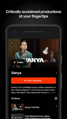 National Theatre at Home gir deg tilgang til et enestående bibliotek, som stadig utvides med nye titler hver måned. I tillegg til det nyeste og beste fra National Theatre Live, åpner vi dørene til en sjelden skattekiste med tidligere utilgjengelige forestillinger fra National Theatre Archive. Nyt ubegrenset visning – se hva du vil, når du vil, uten tidsbegrensninger. Som abonnent får du også eksklusiv førpremiere på utvalgte forestillinger og unikt bak-scenen-materiale som tar deg enda dypere inn i teaterverdenen. Enten du er hjemme eller på farten, er din personlige teateropplevelse bare et klikk unna, tilgjengelig via nettleser eller National Theatre at Home-appen.