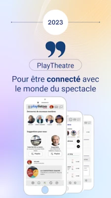 PlayThéâtre er et kulturelt sosialt nettverk for teaterelskere. Koble deg til teaterverdenen, del dine meninger om stykker, veilede andre medlemmer og oppdag spennende nye forestillinger. Et sted for alle som elsker scenekunst og ønsker å være en del av fellesskapet.